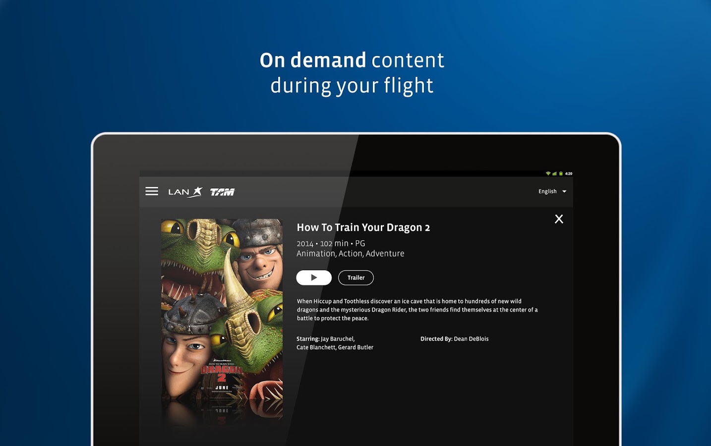 Si ten??s un smartphone, tablet, computadora port??til u otro tipo de dispositivo electr??nico, es posible llevarlo a bordo. LAN Entertainment es el sistema de entretenimiento a bordo que permite disfrutar en algunos de los aviones de LAN de las mejores pel??culas del ??ltimo tiempo, entretenidas series de televisi??n, series en temporadas completas y un mapa de vuelo interactivo, para que el viaje se pase volando.